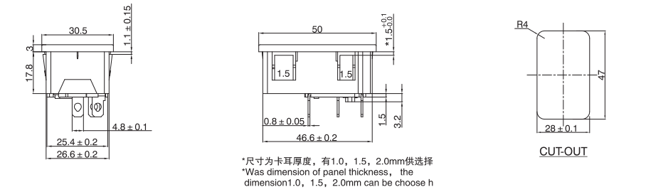 治具插座S-03系列,單插、二合一、三合一保險插座等多種規(guī)格,大電流10A ,15A,產(chǎn)品通過UL VDE CCC CB等認證,常見于家用電器,音響功放機等